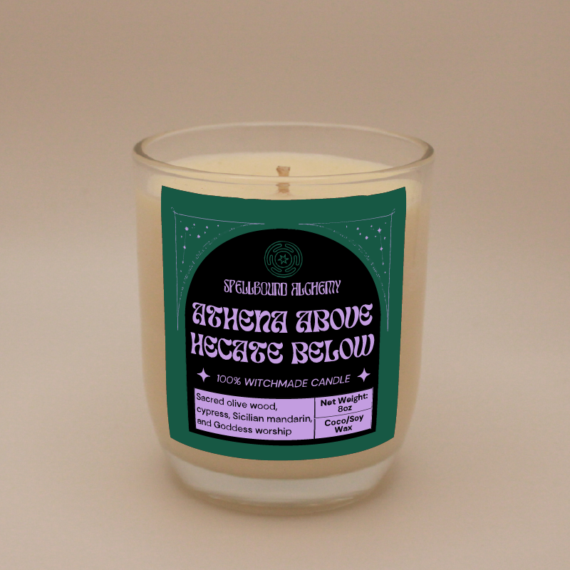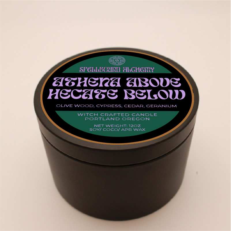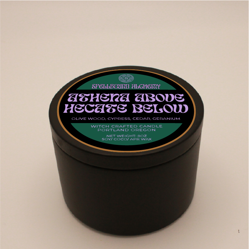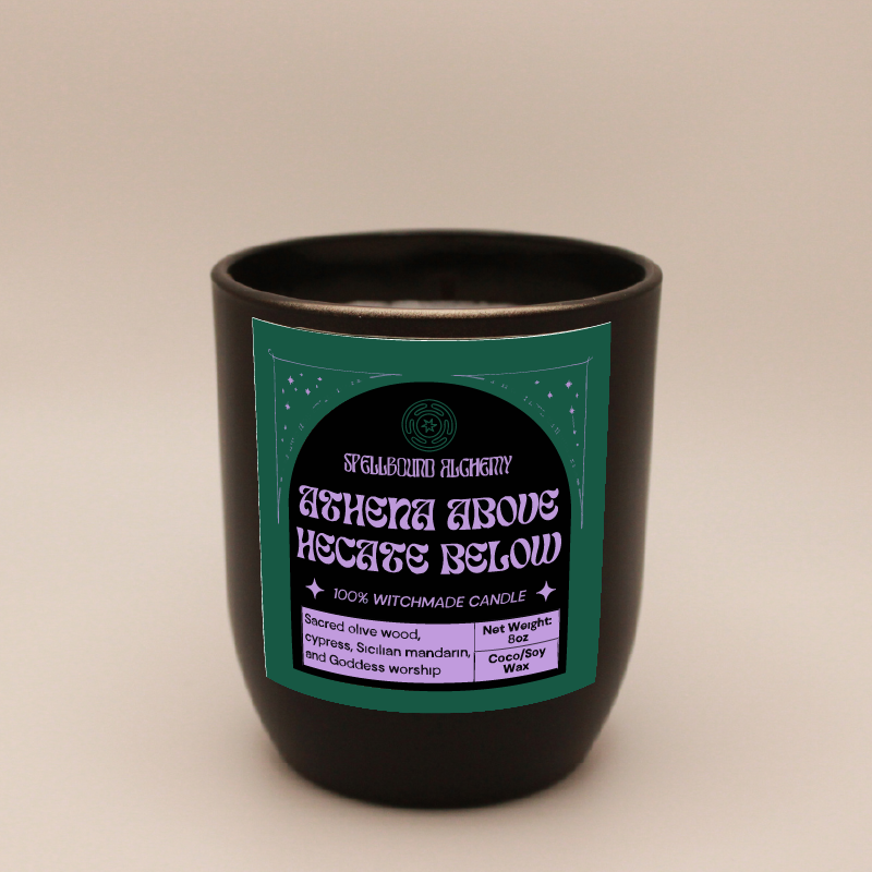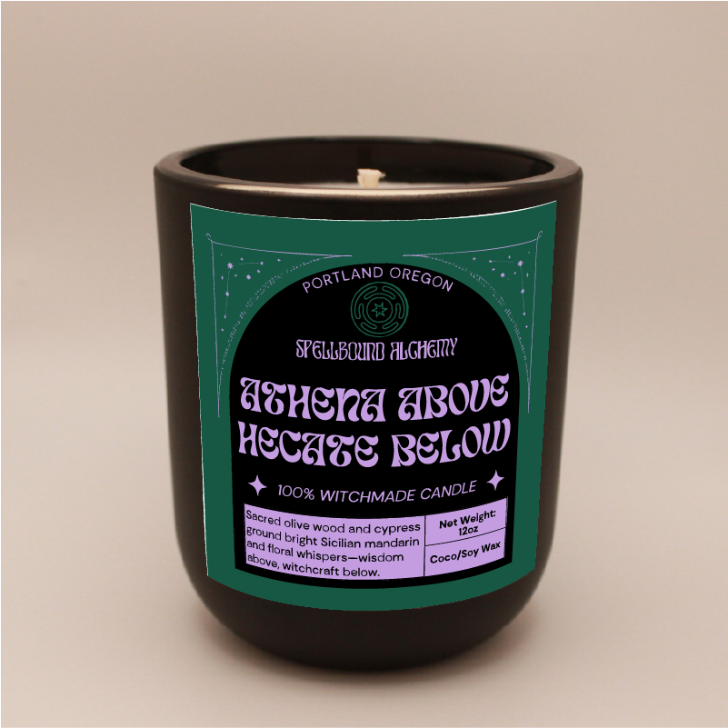 Two goddesses, one flame. Athena Above, Hekate Below honors the balance between wisdom and witchcraft between light and shadow, intellect and intuition. The scent is deeply grounding, a blend of sacred herbs and woods that feels both ancient and empowering.