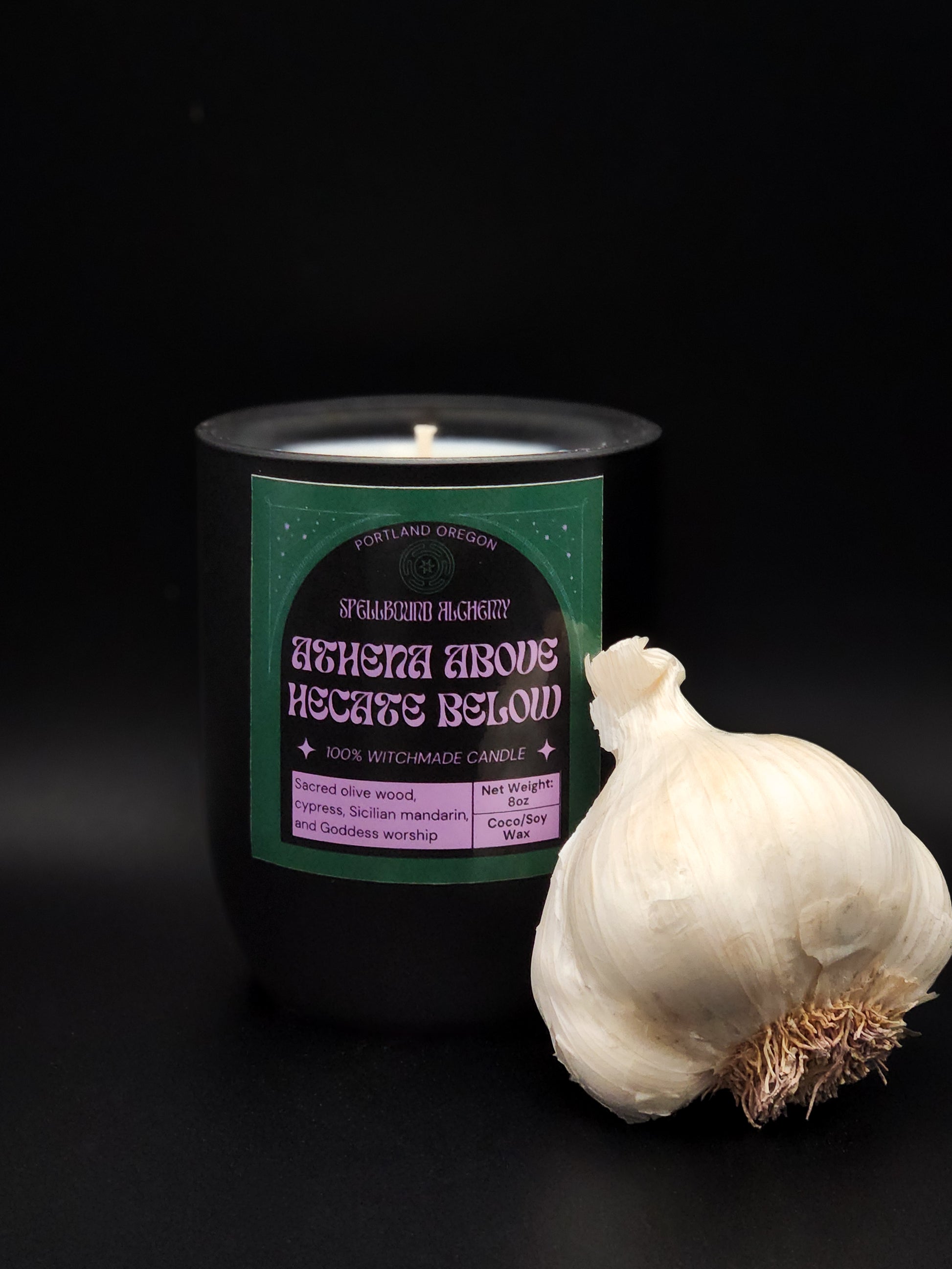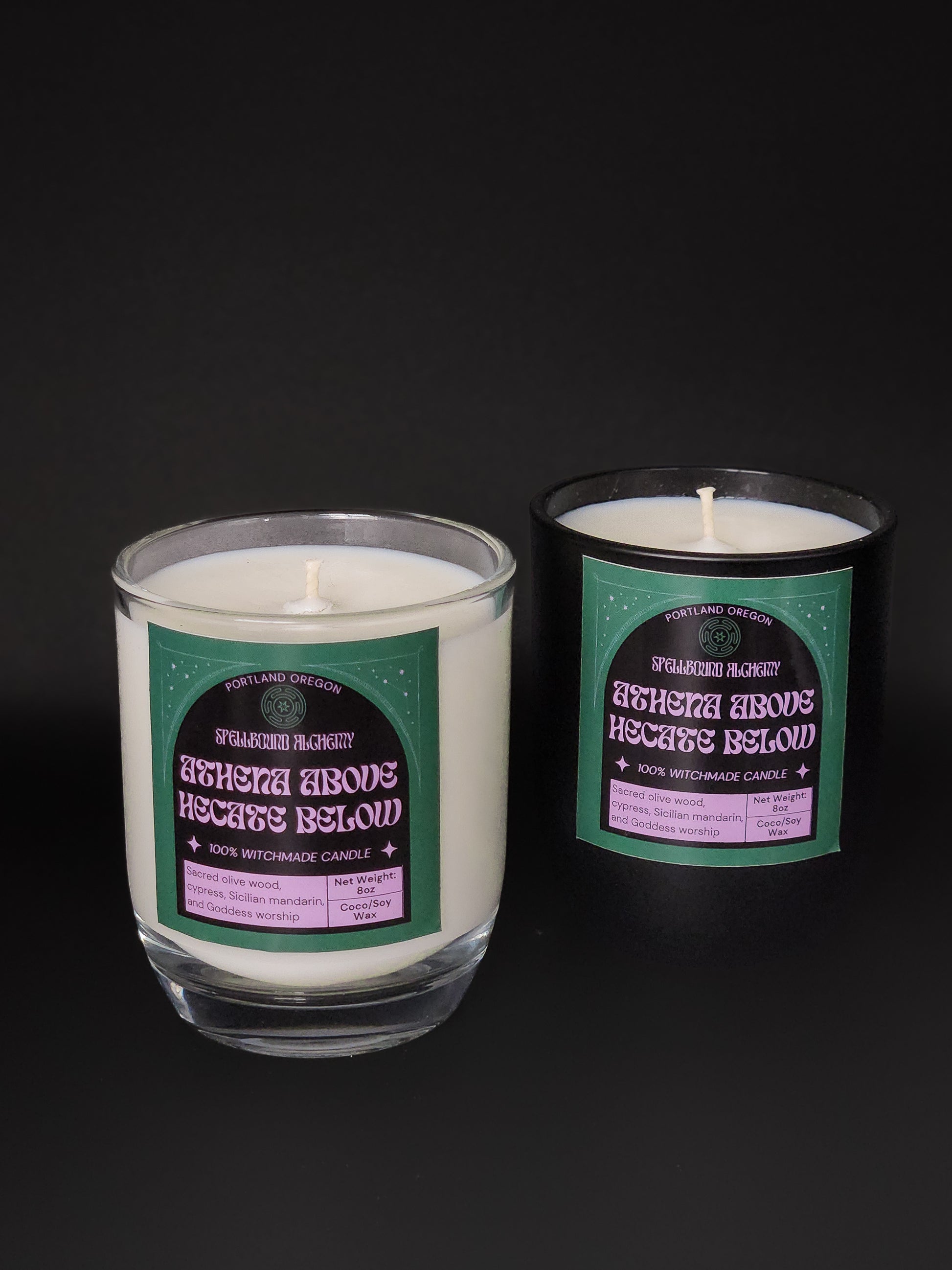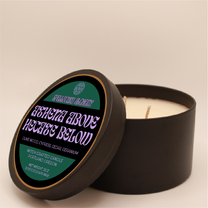Two goddesses, one flame. Athena Above, Hekate Below honors the balance between wisdom and witchcraft between light and shadow, intellect and intuition. The scent is deeply grounding, a blend of sacred herbs and woods that feels both ancient and empowering.