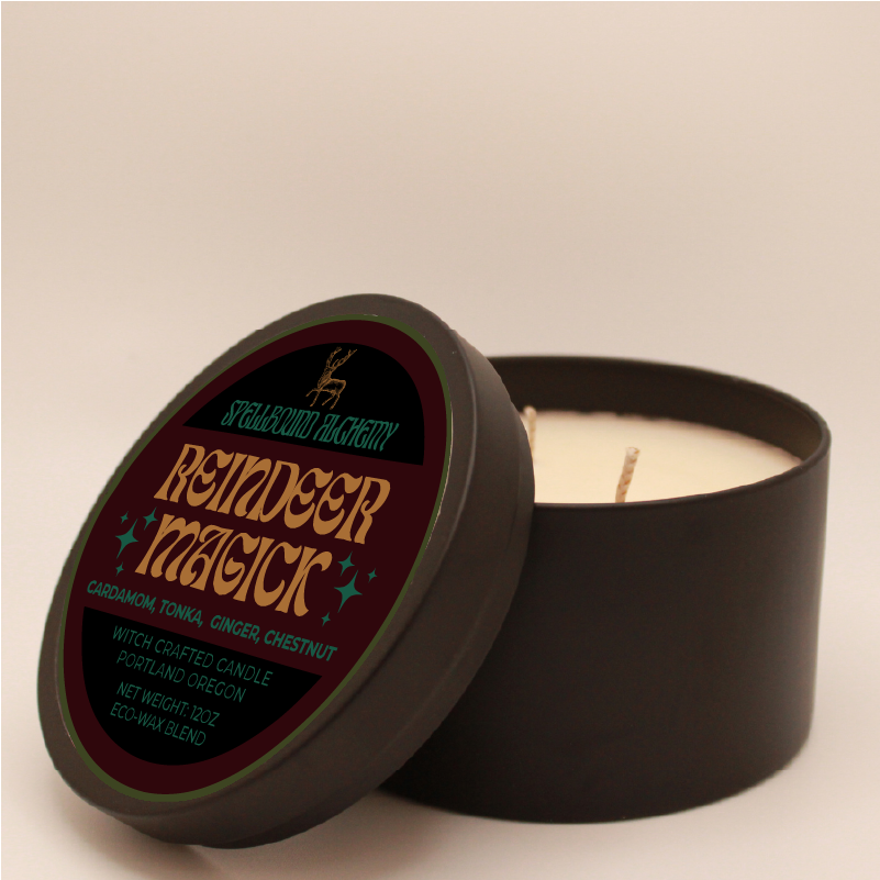 Beneath the northern lights, the reindeer walks patient, powerful, luminous against the snow. Reindeer Magick embodies that sacred strength. The will to move through darkness and still find beauty in the cold. Black cardamom and cream swirl together in a soft, smoky warmth that wraps around the soul. This scent feels like survival and grace — a steady flame that never falters, even when the world lies frozen.