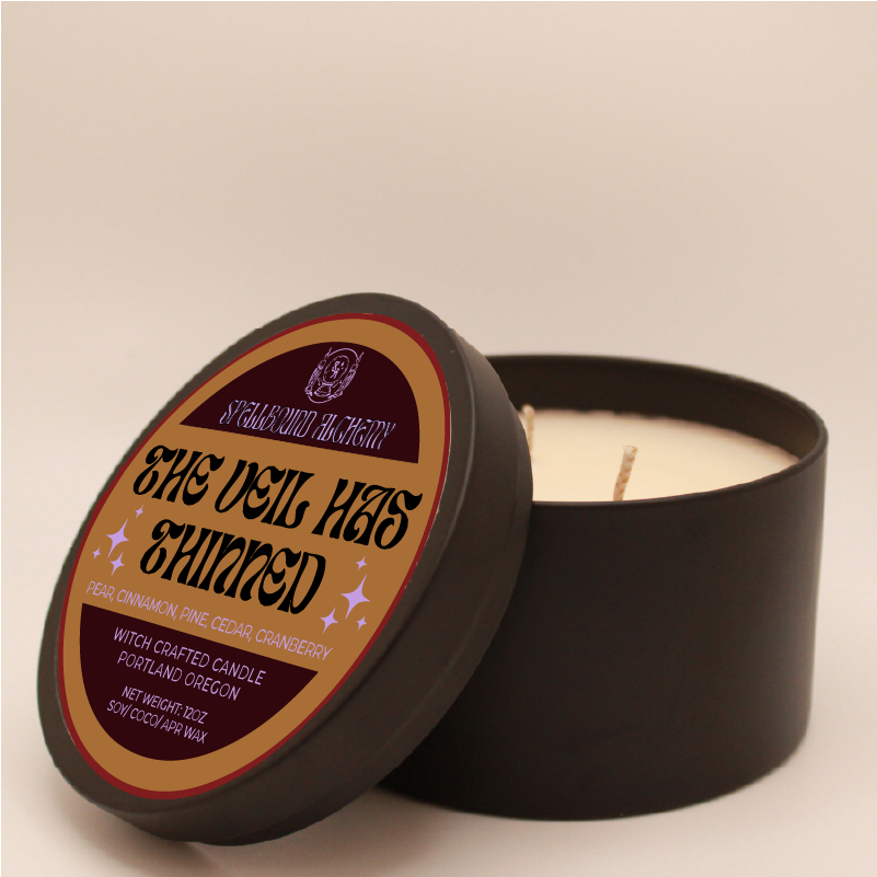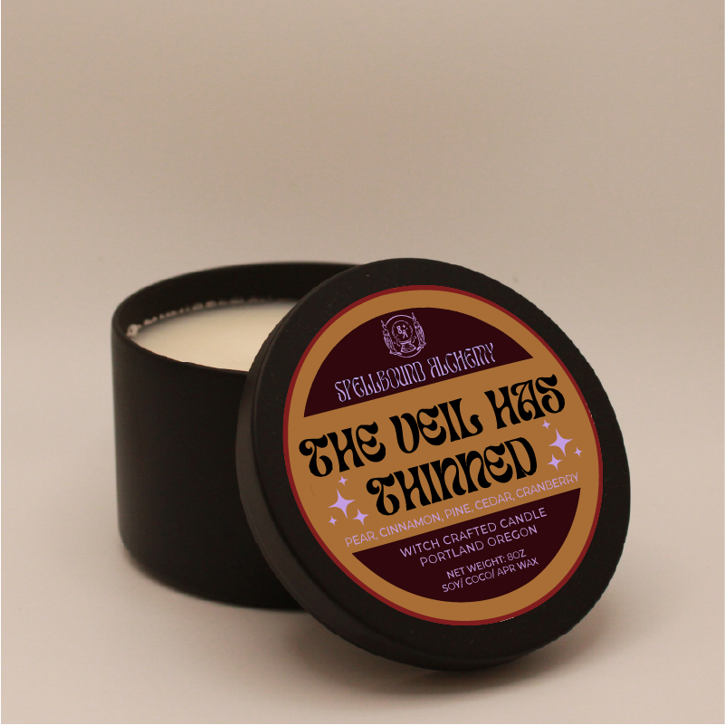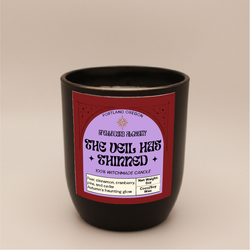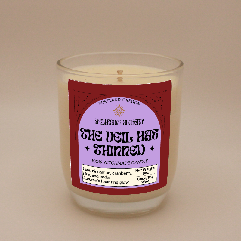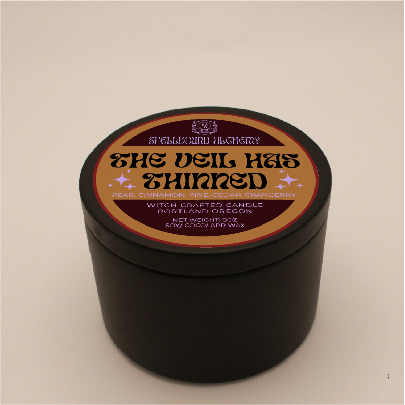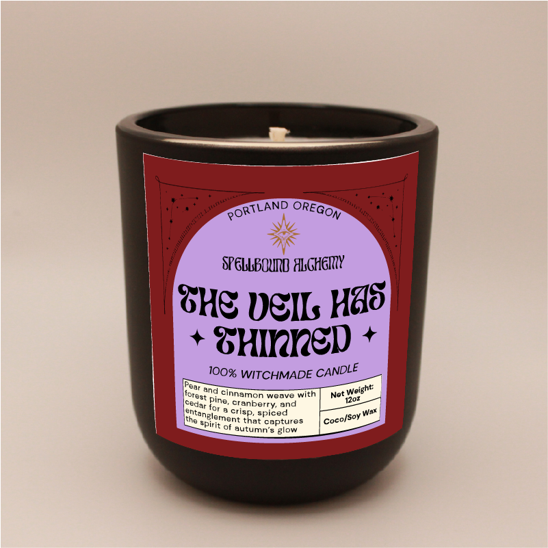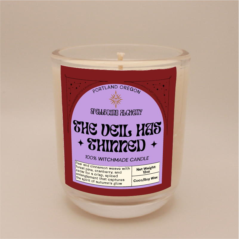 Somewhere between sunset and spirit lies this forest, glowing red and gold as the veil shimmers open. The Veil Has Thinned smells and like autumn twilight: woodsmoke, amber leaves, and the echo of something ancient in the trees.