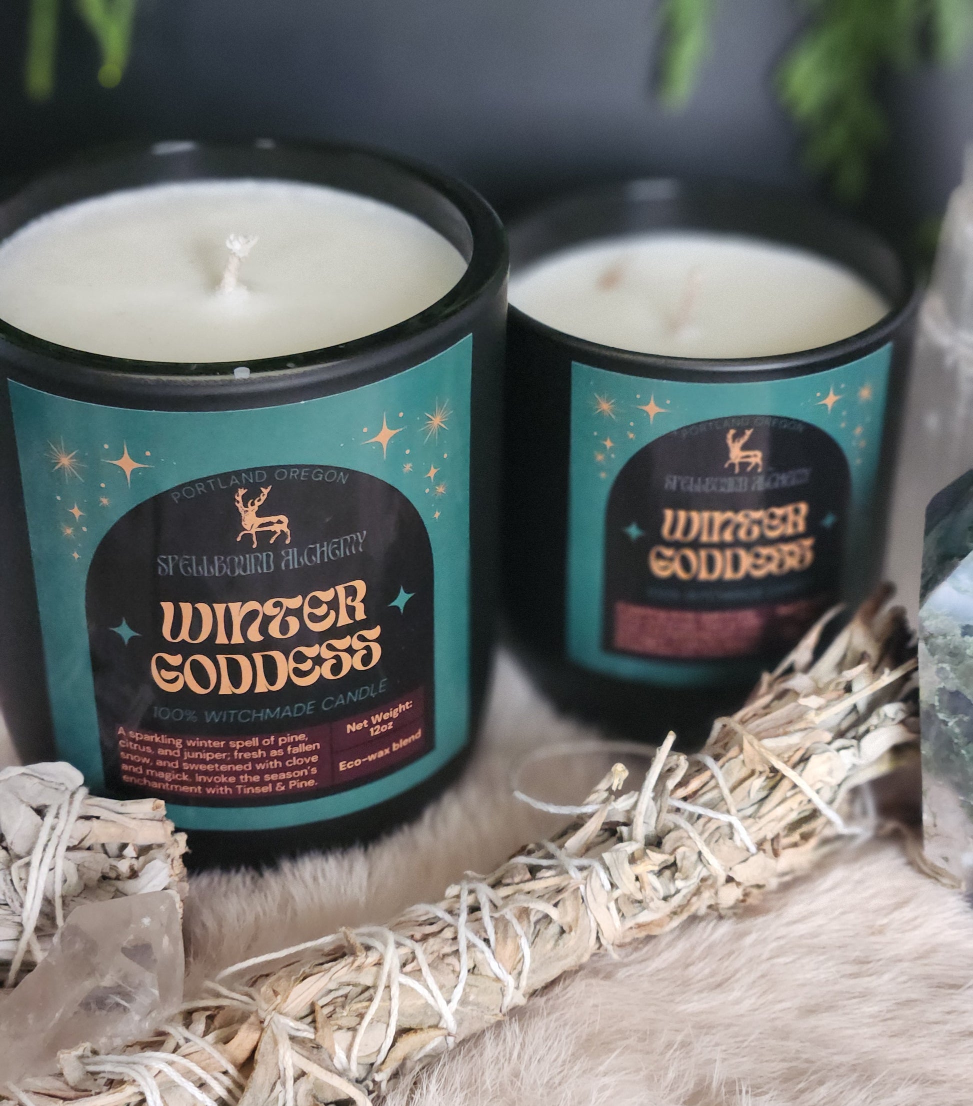She walks where snowflakes fall like blessings and the air itself glitters. Winter Goddess is the embodiment of poise and power, delicate yet commanding, radiant yet cold as crystal. Notes of snow lily, amber, and white musk swirl like frost and fire in divine balance.Â